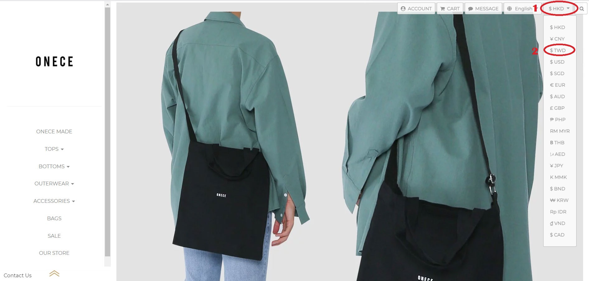 -點擊左上放的目錄,之後選HKD$, 再選擇 TWD$