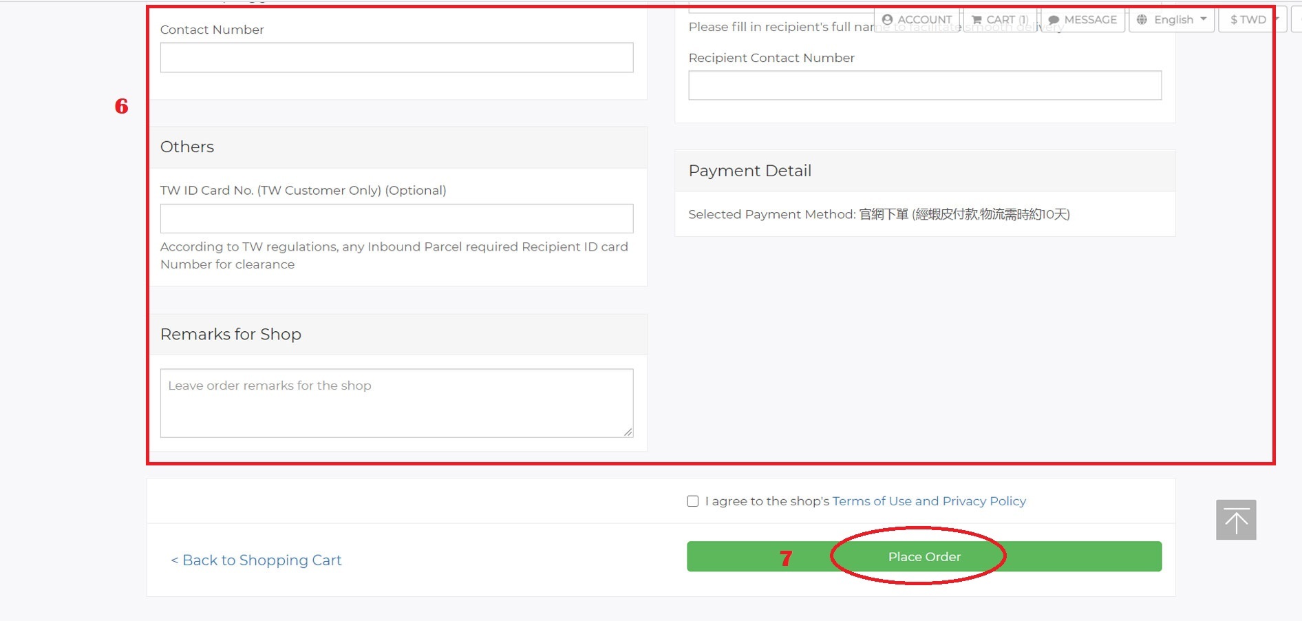 6. Fill the necessary field and then place the order / 填寫所需資料,然後結帳