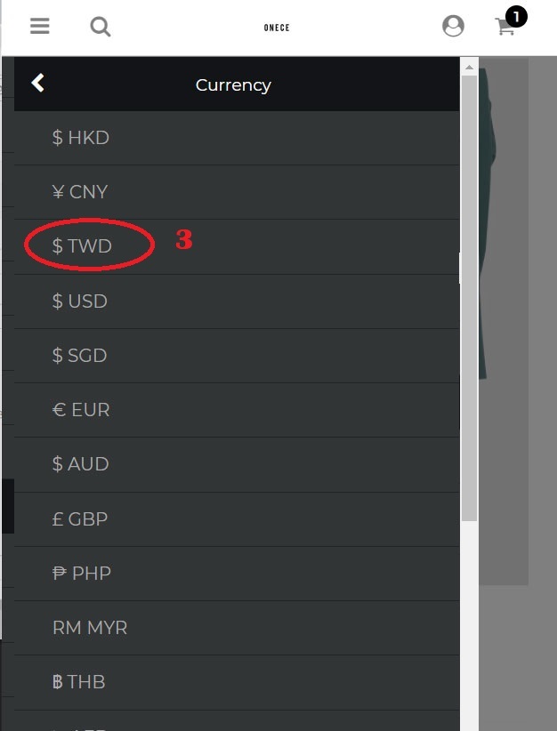 - Click Menu at the Top Left Corner, click to HKD$, then pick TWD$