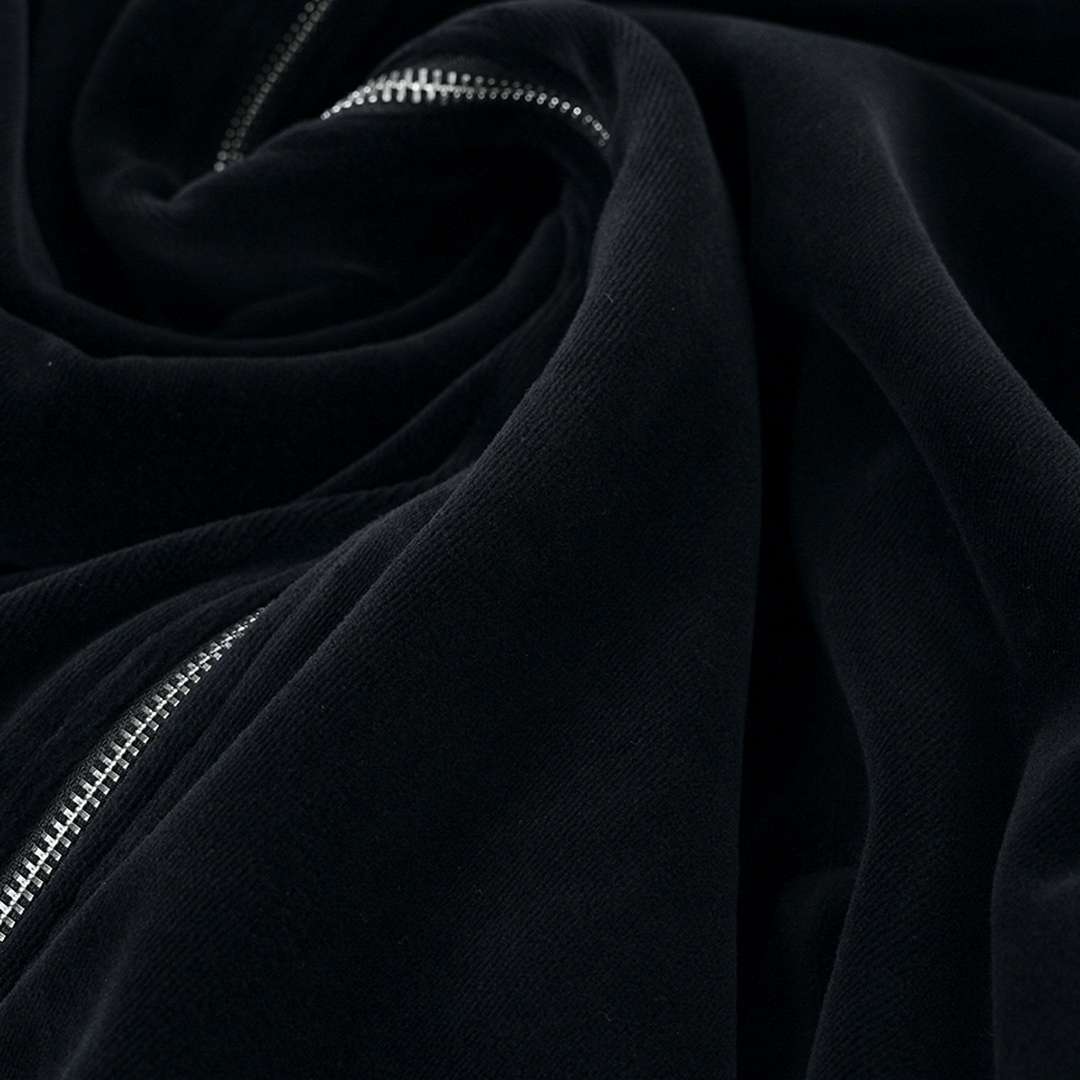 天鵝絨材質有帽拉鏈外套